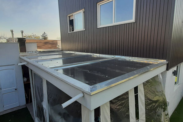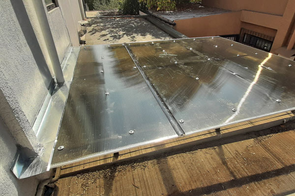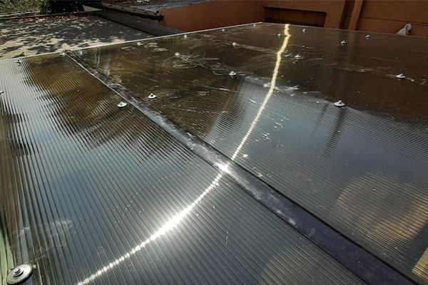 Instalación de Policarbonato, sellos, forros y adosamiento a muros en hojalatería y canales de aguas lluvia.